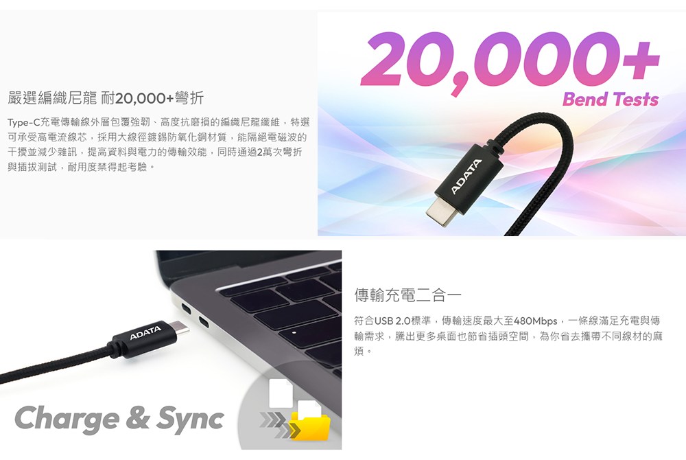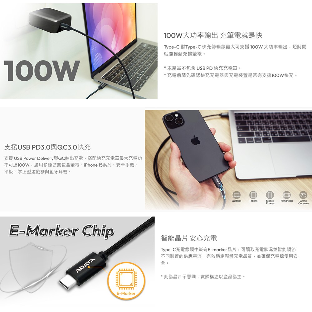 ADATA 威剛 USB-C TO TYPE-C 100W PD 快充傳輸線