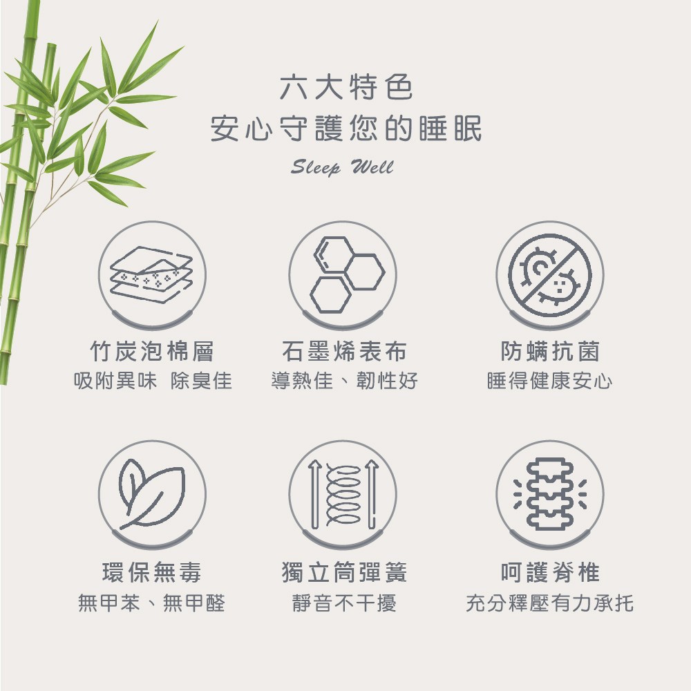 【本木】N01石墨烯竹炭三線獨立(表床墊-雙大6尺雙大6尺