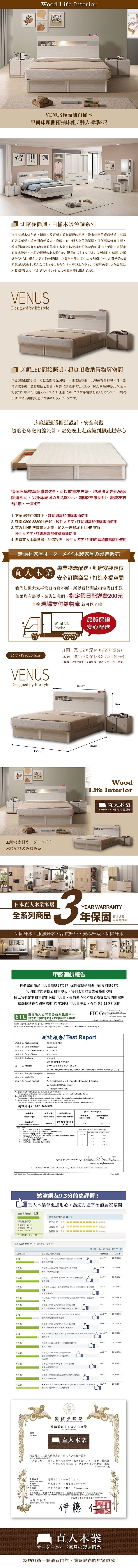 源氏木語西雅圖橡木原木色斜靠雙人5尺150x190夜燈低舖床架 Y90B28 (H014324397)