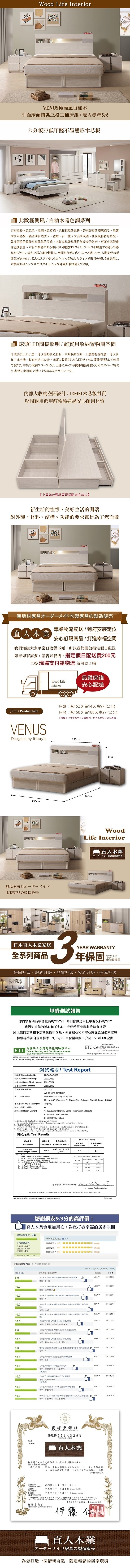 源氏木語西雅圖橡木原木色斜靠雙人5尺150x190夜燈低舖床架 Y90B28 (H014324397)