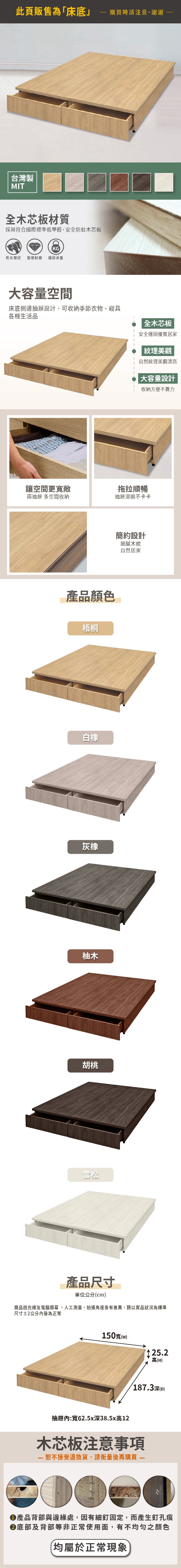 《新之森林》尾二抽屜款收納床底雙人5尺(四色可選)