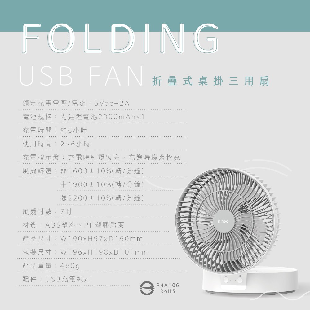 單頭風扇 USB充電 360度循環送風 低噪音 ABS扇葉 黑色