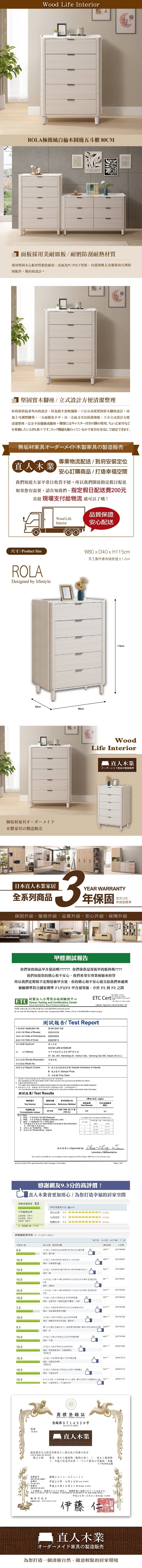 直人木業-ROLA極簡風白榆木圓邊五斗櫃80公分
