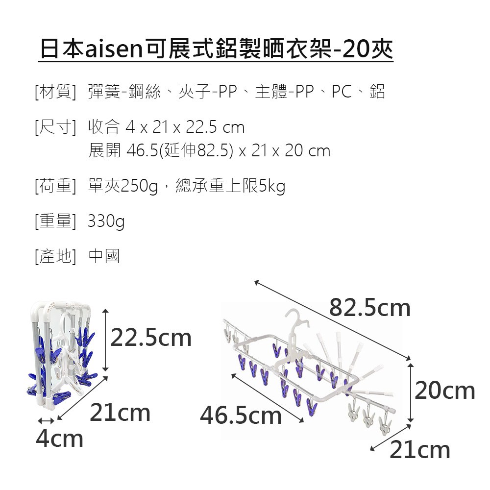AISEN 可展式鋁製曬衣架 20夾
