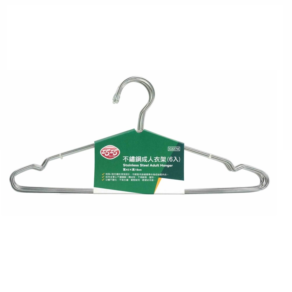 HK不鏽鋼成人衣架6入