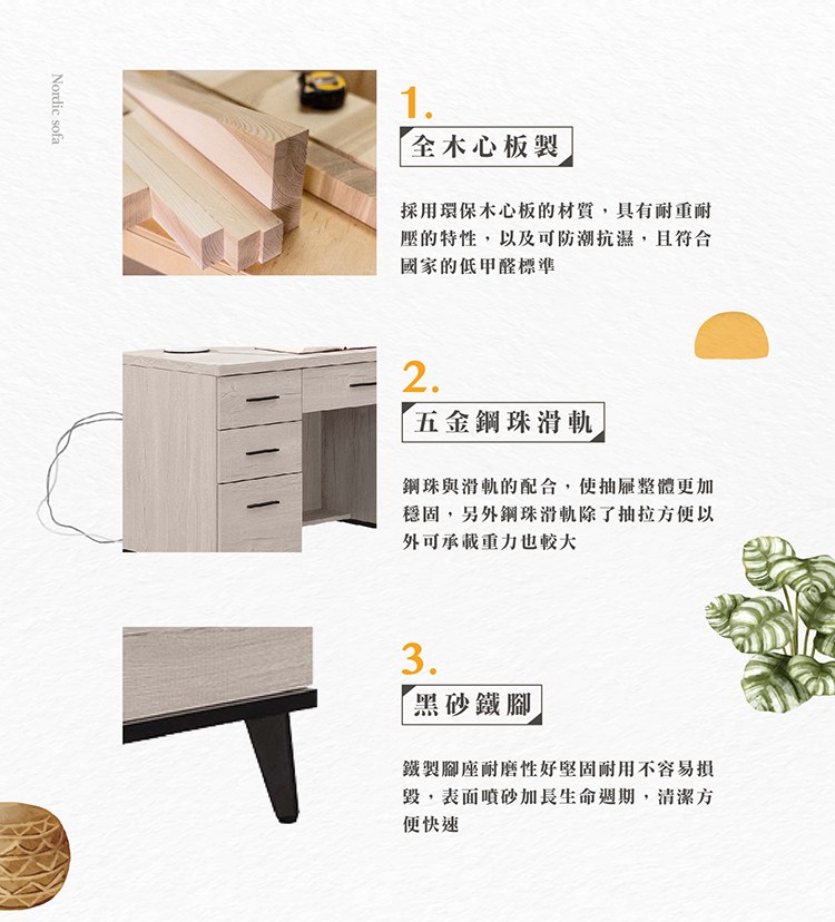 【Homelike】喜家居雪杉色2.7尺二抽書桌(2504)