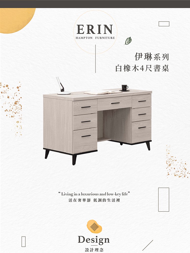 【Hampton 漢汀堡】伊琳系列白橡木4尺書桌