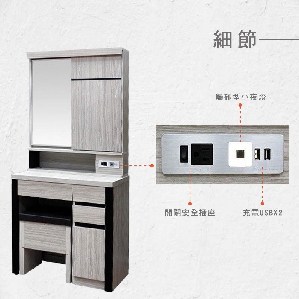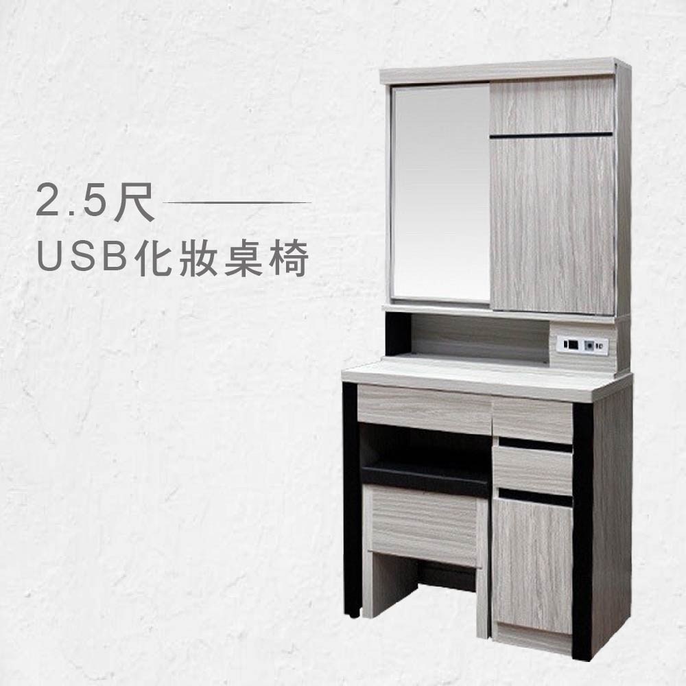 本木-鳴人 2.5尺 USB收納鏡台/化妝台(含椅)