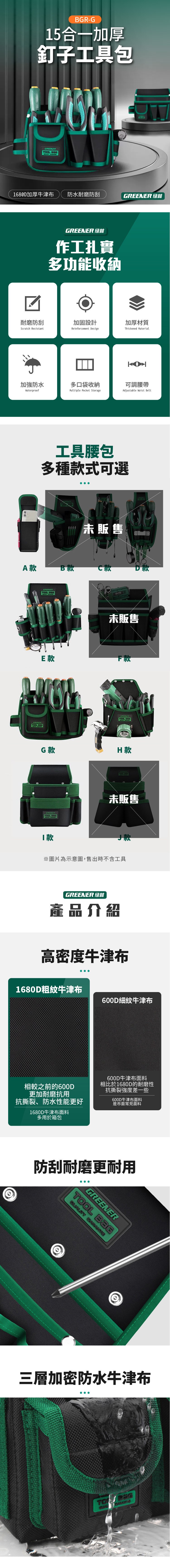 【GREENER】15合一加厚釘子工具包 BGR-G (送黑色腰帶)