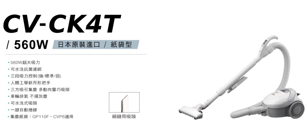 加碼送【HITACHI日立】560W日本原裝紙袋型吸塵器 CV-CK4T