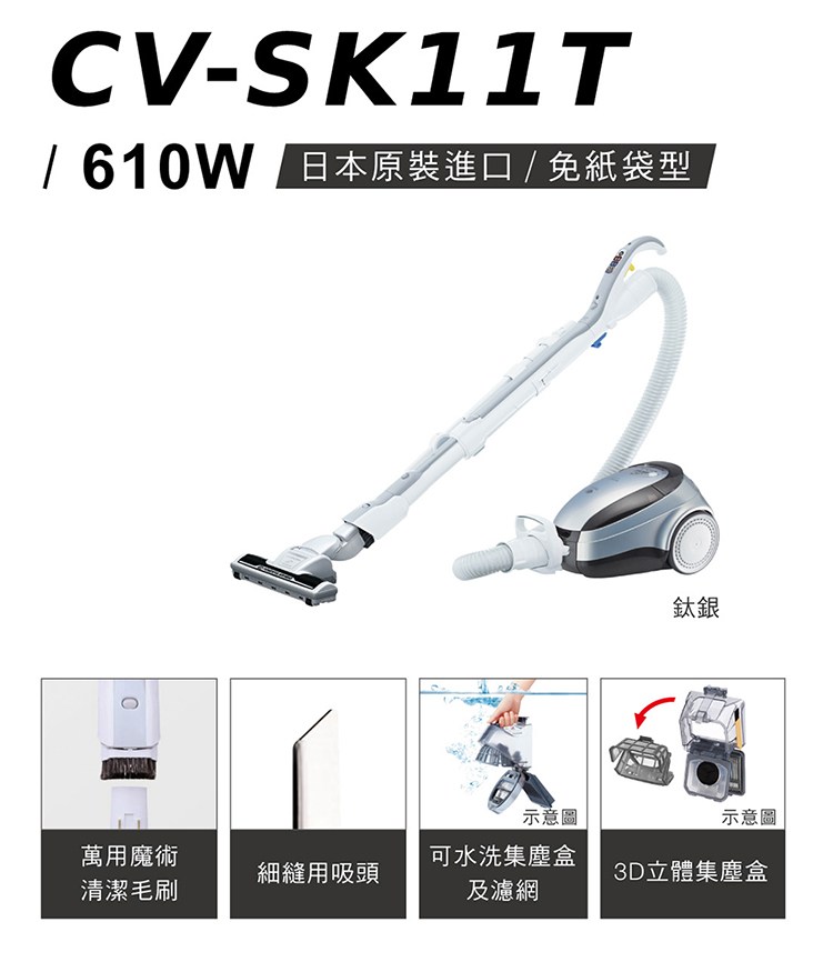 HITACHI 日立 無袋式吸塵器 CV-SK11T 610W 強勁吸力 日本原裝進口 銀色系