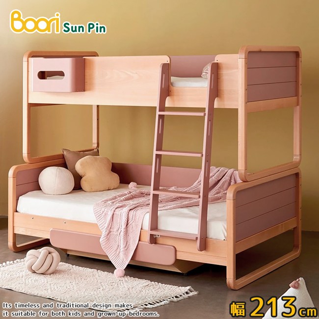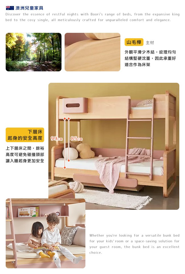 【Boori】貝崙雙層實木子母床‧幅213cm(櫻桃色)