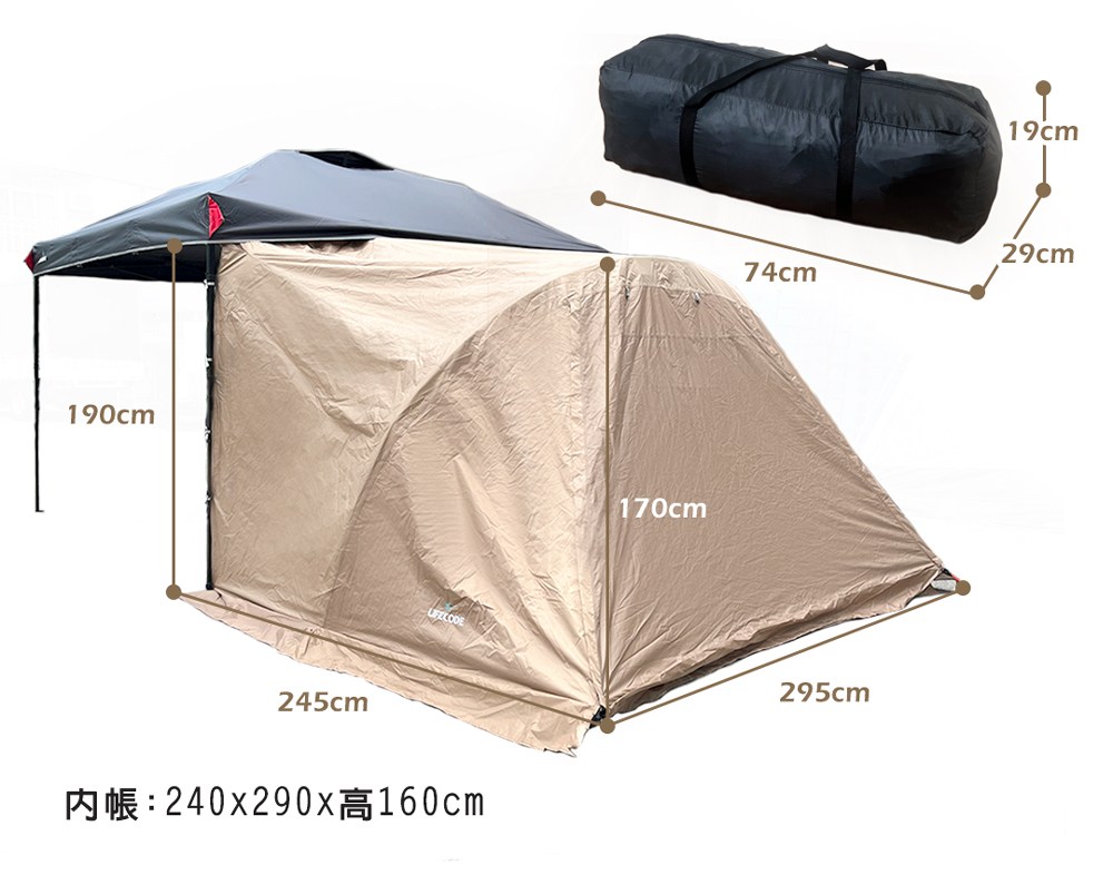 ● 速搭客廳帳/炊事帳可加購配件:雙層延伸帳篷(內帳+防水外帳)