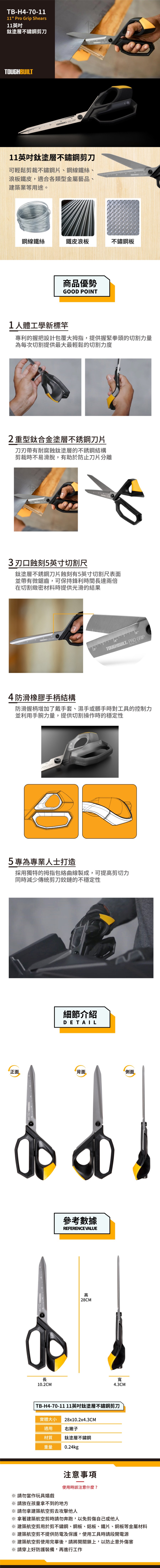 TOUGHBUILT 多功能11英吋鈦塗層不鏽鋼剪刀 TB-H4-70-11