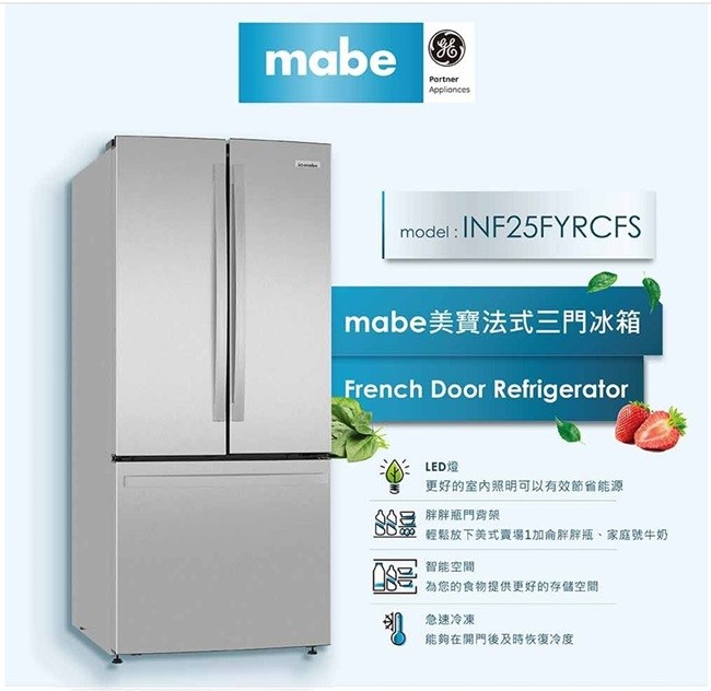 【mabe美寶】715L法式門冰箱-防指紋不銹鋼INF25FYRCFS