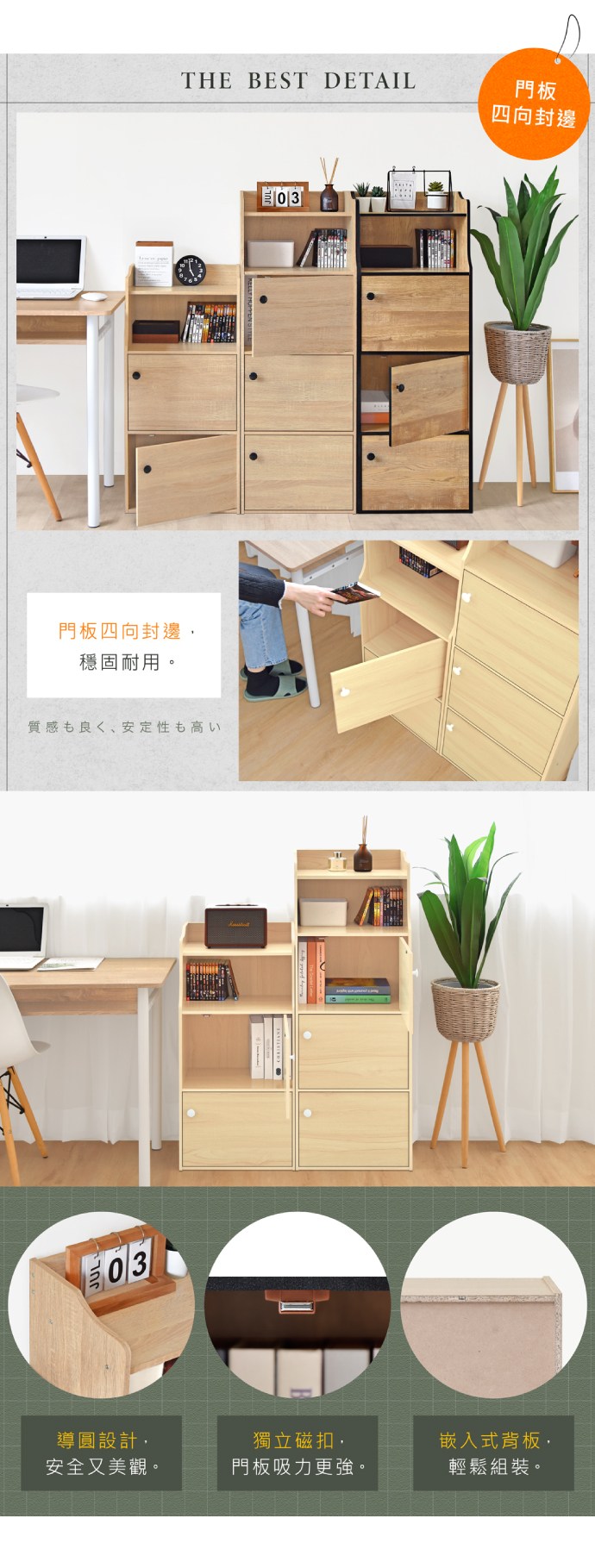 《HOPMA》斯麥造型三門一格收納櫃 台灣製造 置物櫃 書櫃 空櫃 三門櫃 四層櫃-白櫻桃