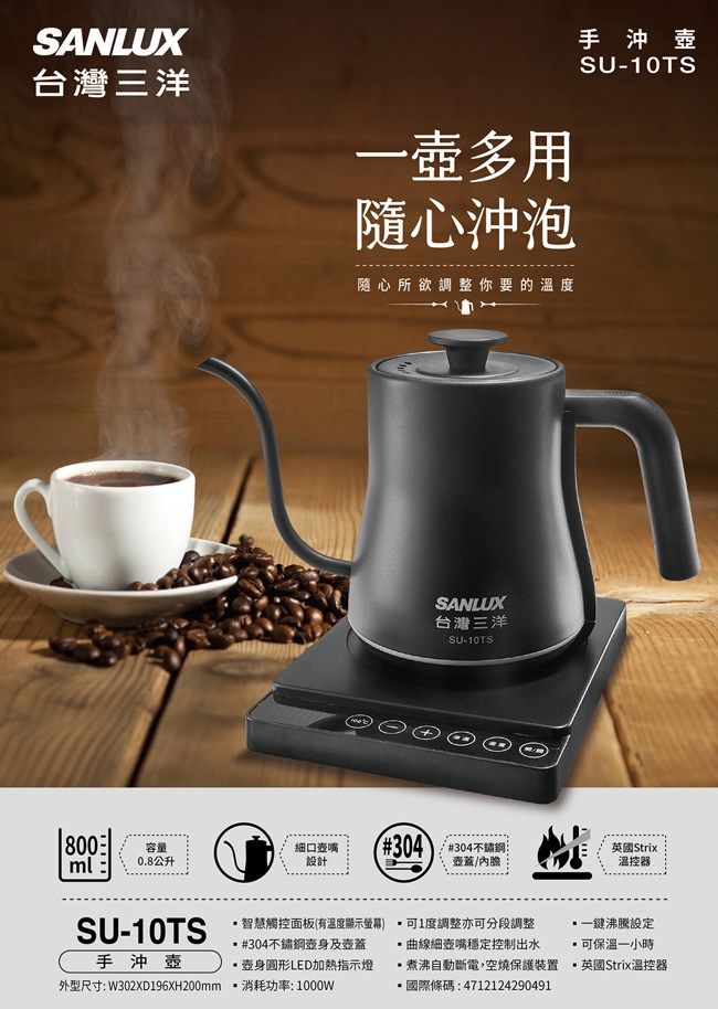 【SANLUX台灣三洋】0.8L咖啡手沖壺 SU-10TS