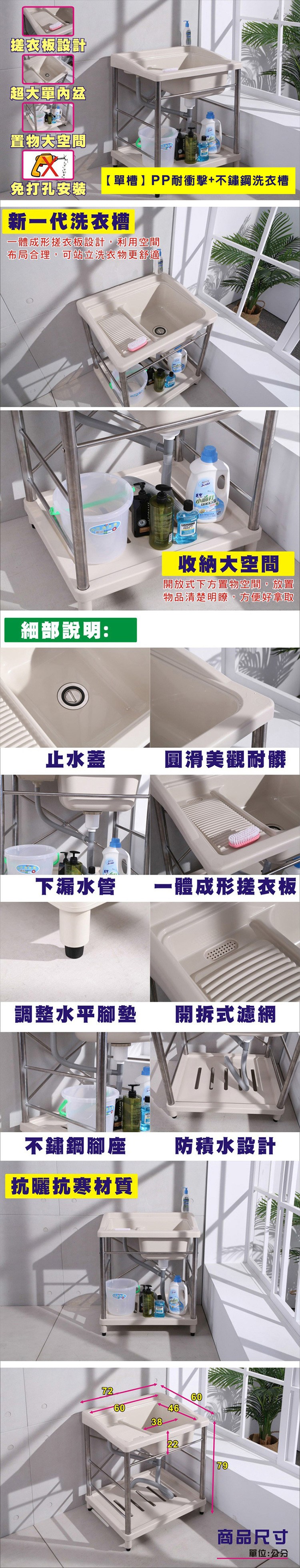 正台灣製高級品質防水防霉PP耐衝擊塑膠材質穩固耐用洗衣槽臉盆 浴櫃,可自行組裝輕鬆擁有洗衣槽,側邊橫桿可披掛抹布,槽面固定洗衣板清洗不晃動省力方便站著洗真輕鬆 腰不痠背不痛