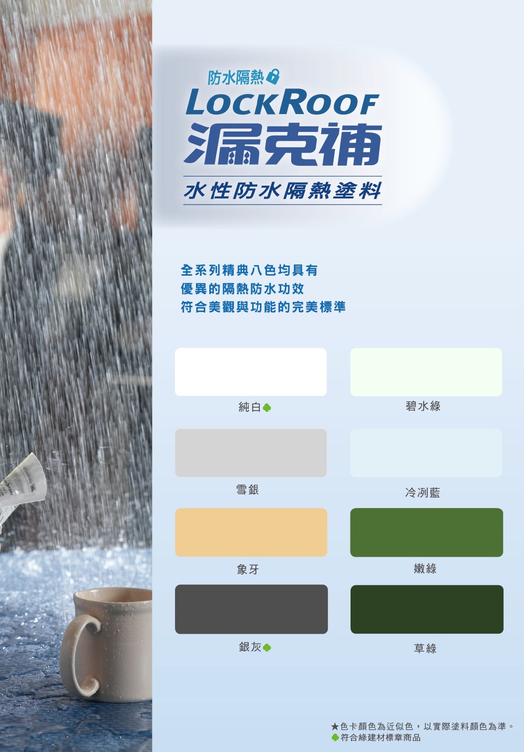 【Rainbow_虹牌油漆】424 漏克補防水隔熱漆 有光(1加侖裝)嫩綠