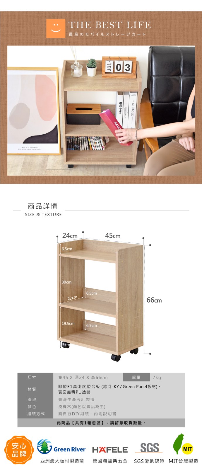 《HOPMA》開放式多格收納櫃 台灣製造 邊櫃 桌櫃 沙發邊櫃 置物櫃 滑輪 美背-淺橡(漂流)木