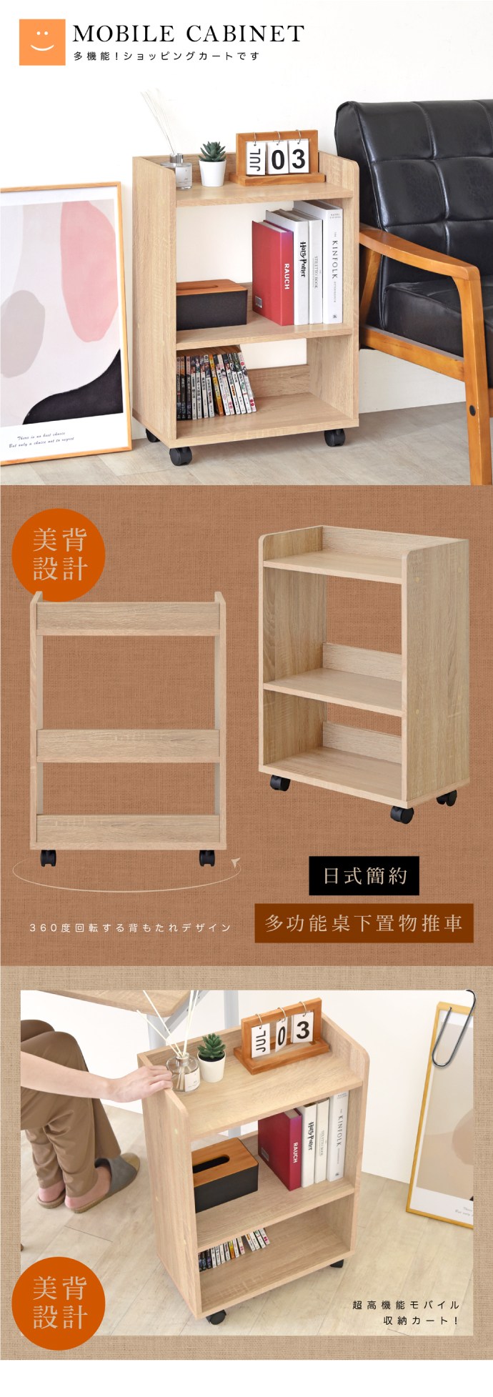 IRIS開放式收納推車/SYR-7520/原木色