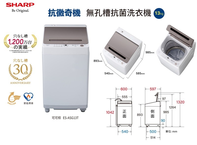 SHARP夏普 13公斤變頻無孔槽洗衣機 ES-ASG13T
