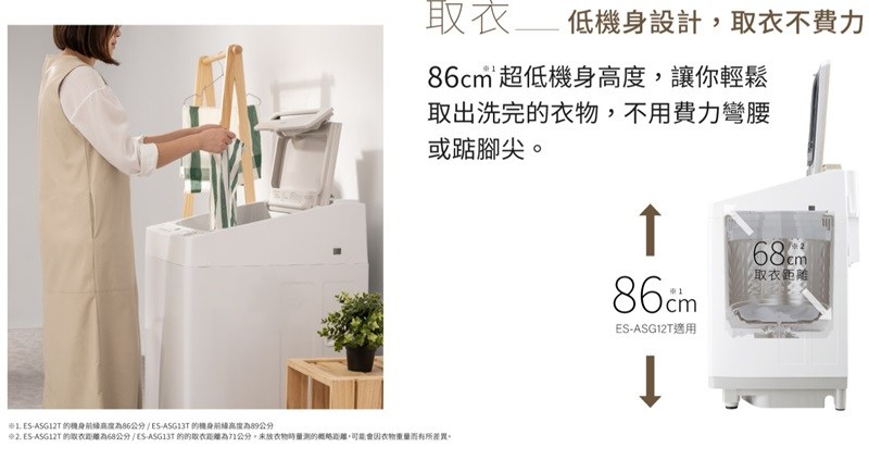 限期登錄送好禮~ SHARP 夏普 ES-ASG13T 13KG 無孔槽變頻洗衣機