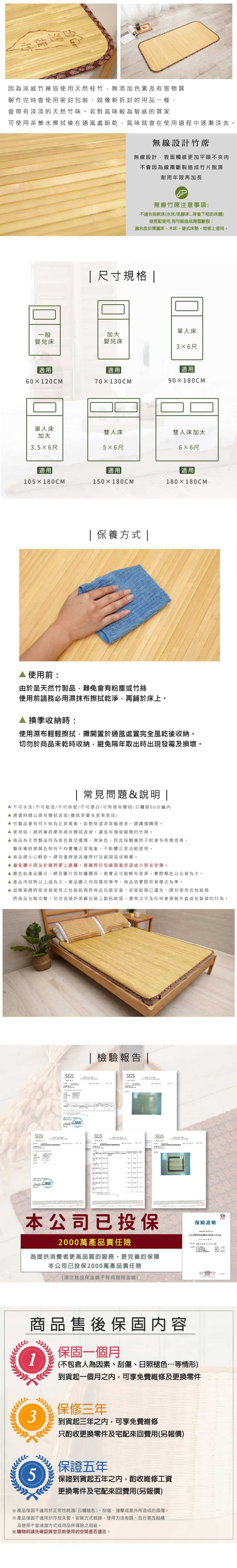 ※商品為天然製品均為原色裁切處理,無染色,因此每片竹片會有些微差異,整床竹蓆顏色稍有不均實屬正常現象,不影響正常功能使用。