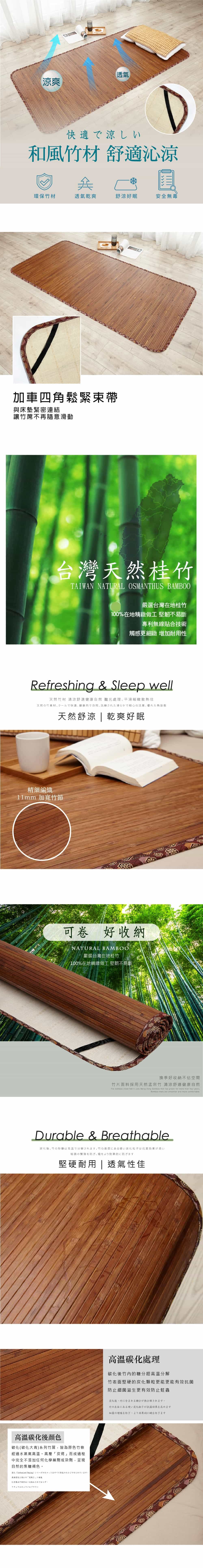 ※商品為天然製品均為原色裁切處理,無染色,因此每片竹片會有些微差異,整床竹蓆顏色稍有不均實屬正常現象,不影響正常功能使用。