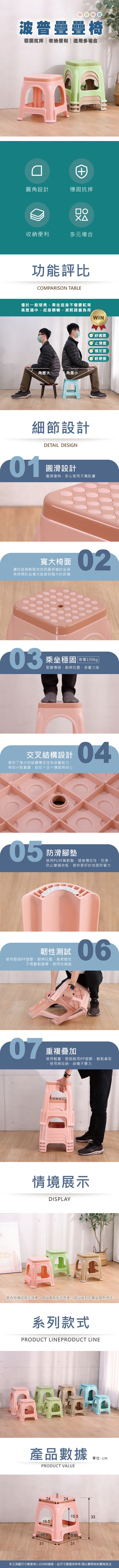 LOGIS 波普疊疊椅 矮凳 椅凳 椅子  4入組【OT-SX4】綠色