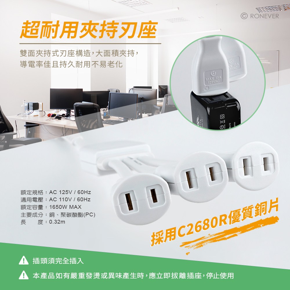 【RONEVER】1對3可轉向電源線組1尺
