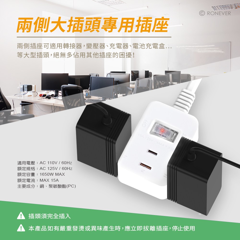RONEVER 1對3可轉向電源線組 32cm 白色 1組