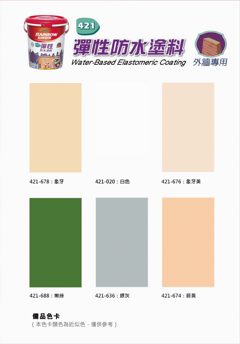 【Rainbow_虹牌油漆】421 水性彈性面漆 有光(5加侖裝)象牙黃