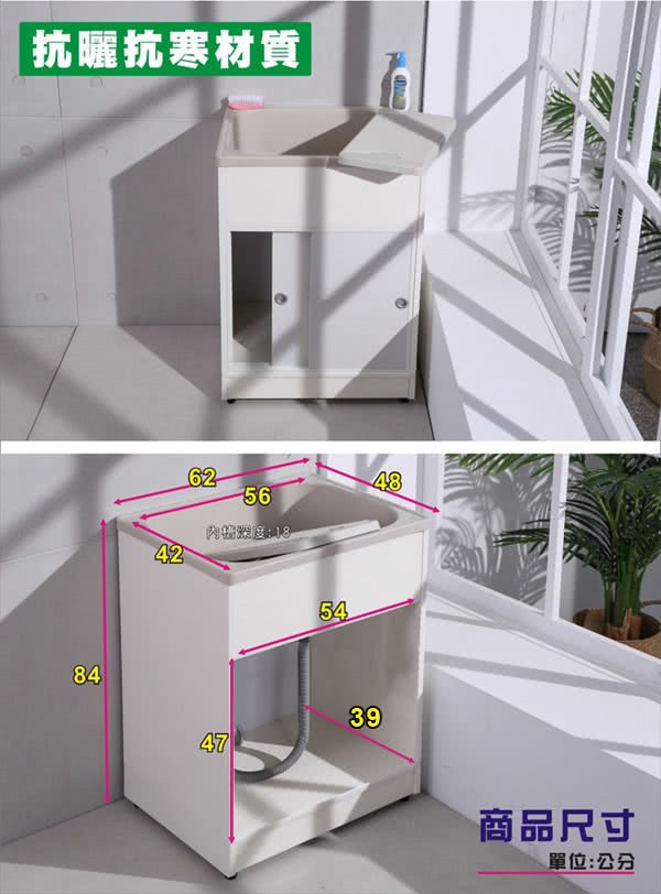 LOGIS 背板防水 升級版 有門櫃體洗衣槽62*48CM(洗手台)A2011-升級版