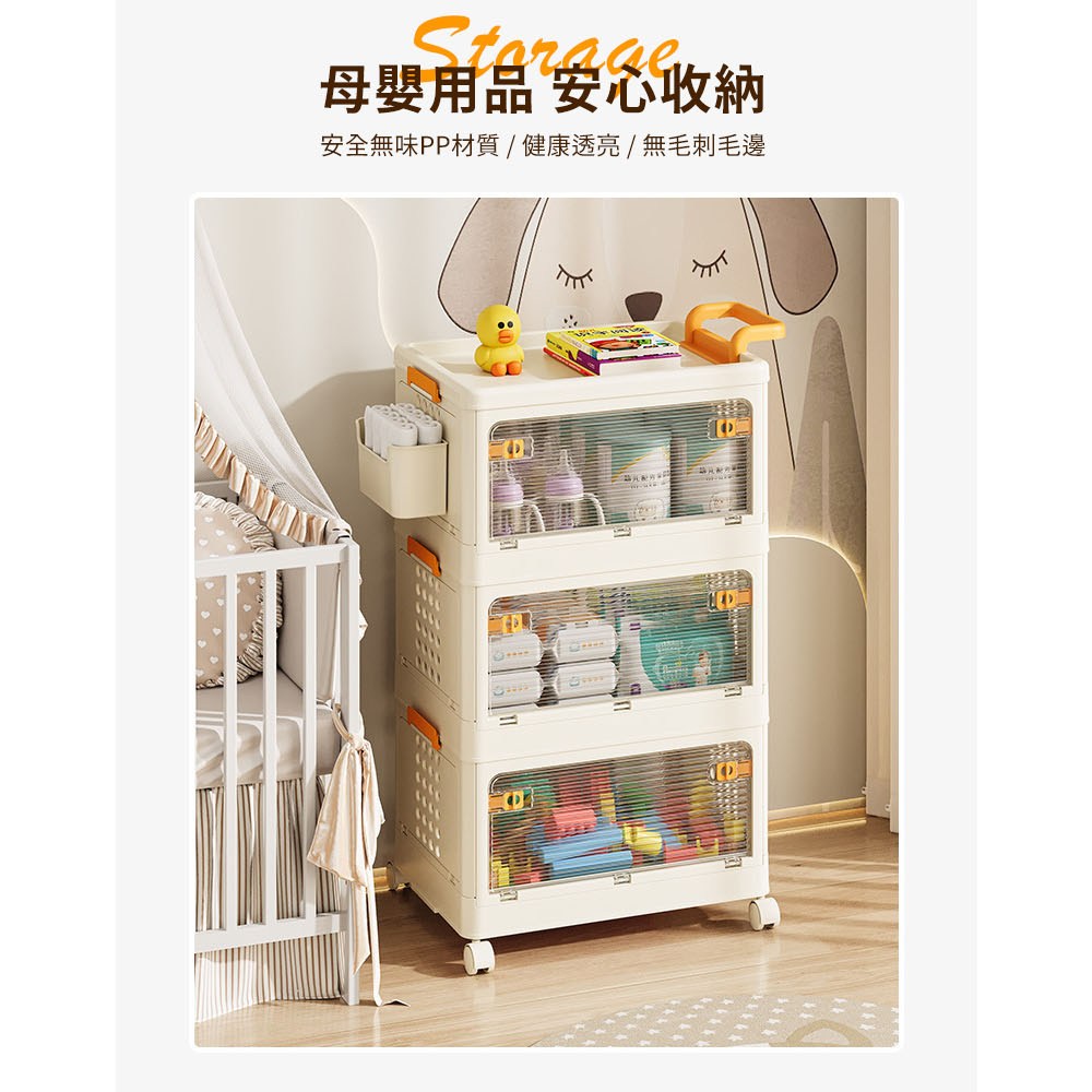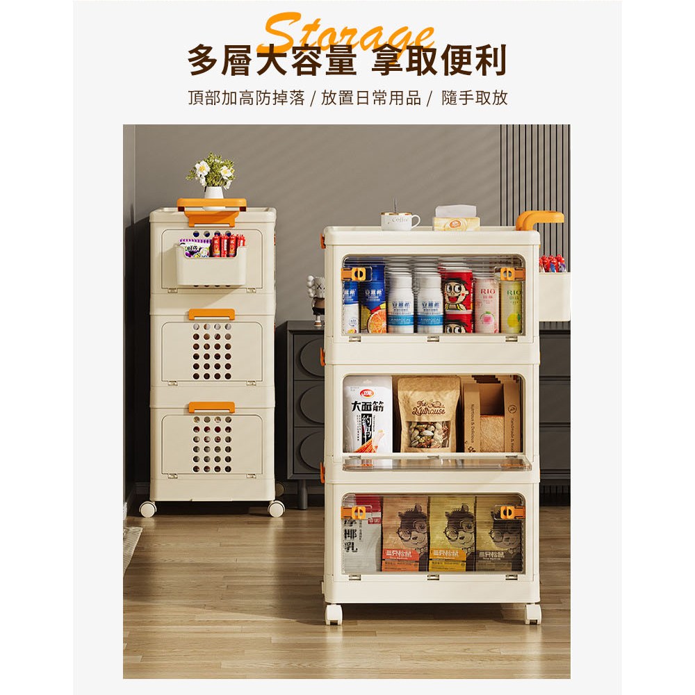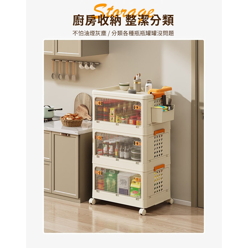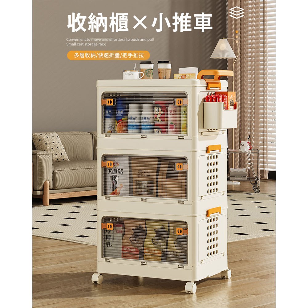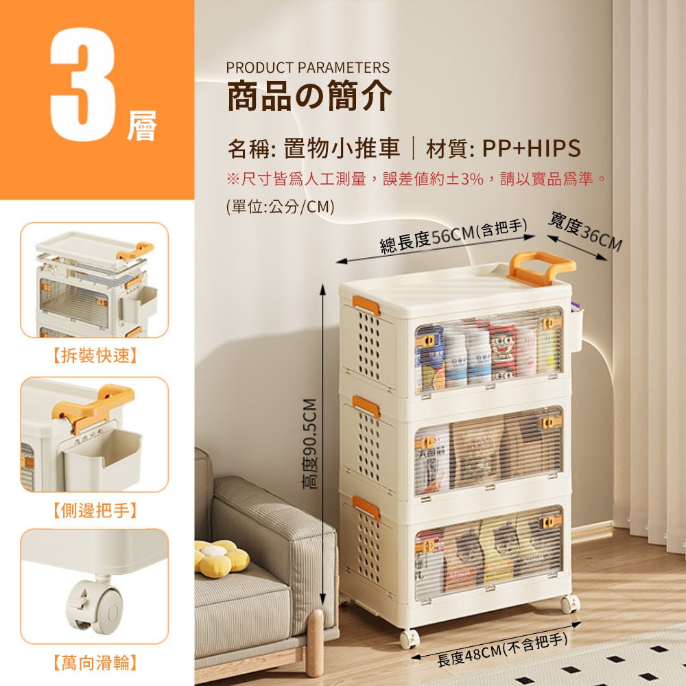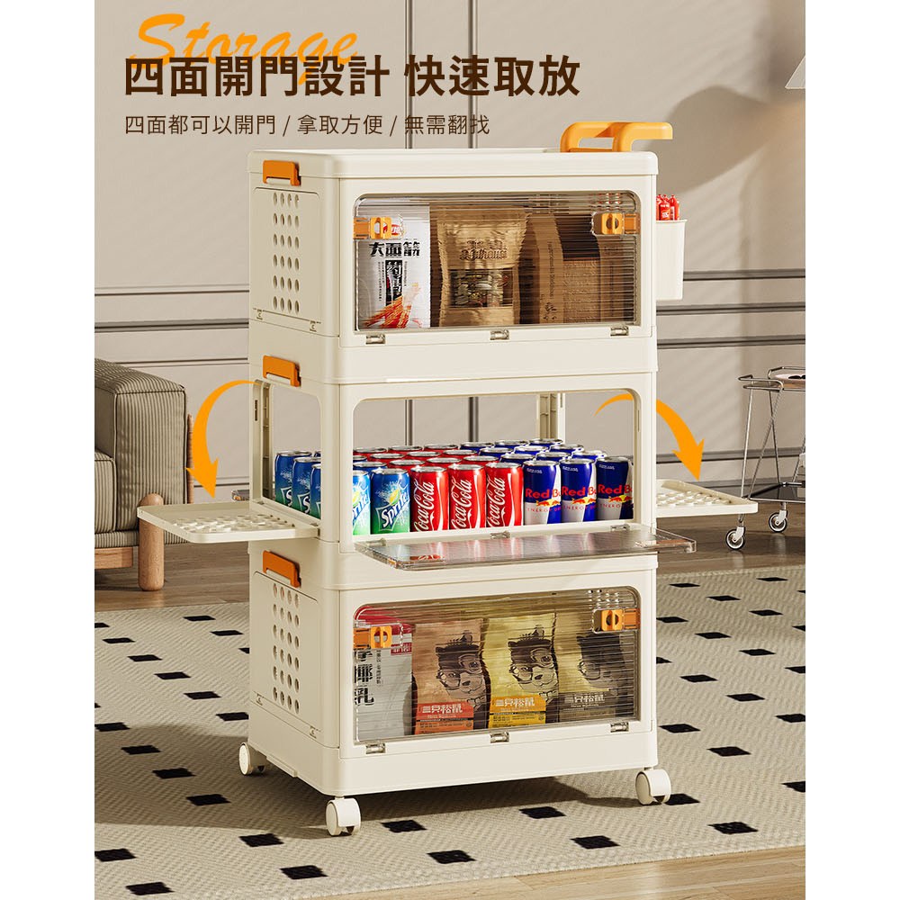【AOTTO】 三層開門折疊置物收納推車-特大款(收納櫃 推車)三層