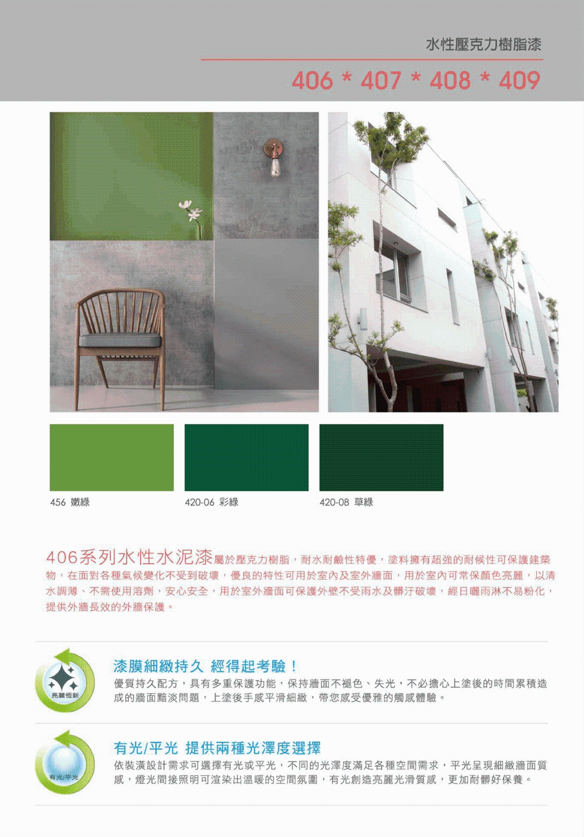 【Rainbow_虹牌油漆】450 水性水泥漆 平光(5加侖裝)4206春芽