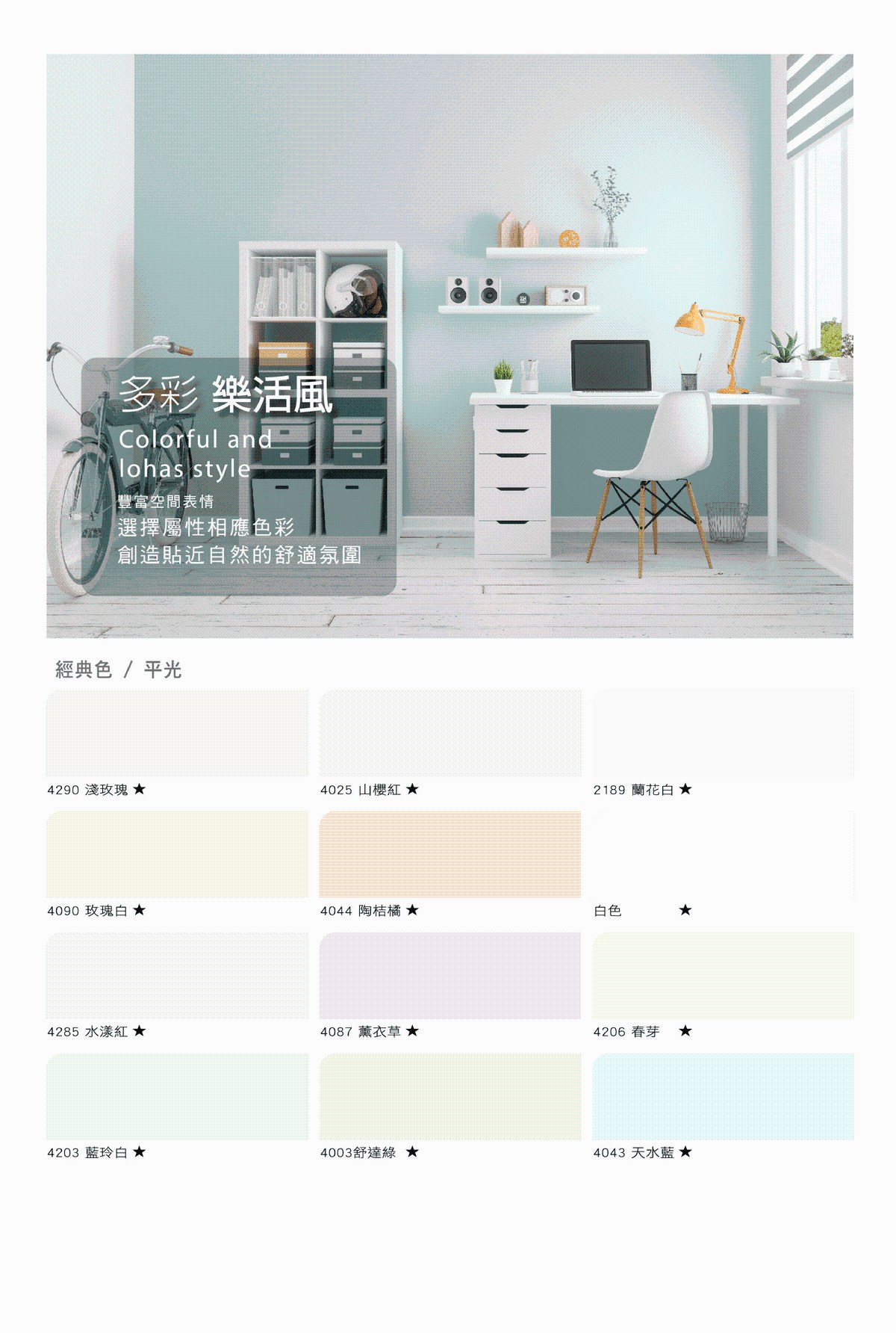 得利 電腦調色健康居+抗菌乳膠漆 W4 3L