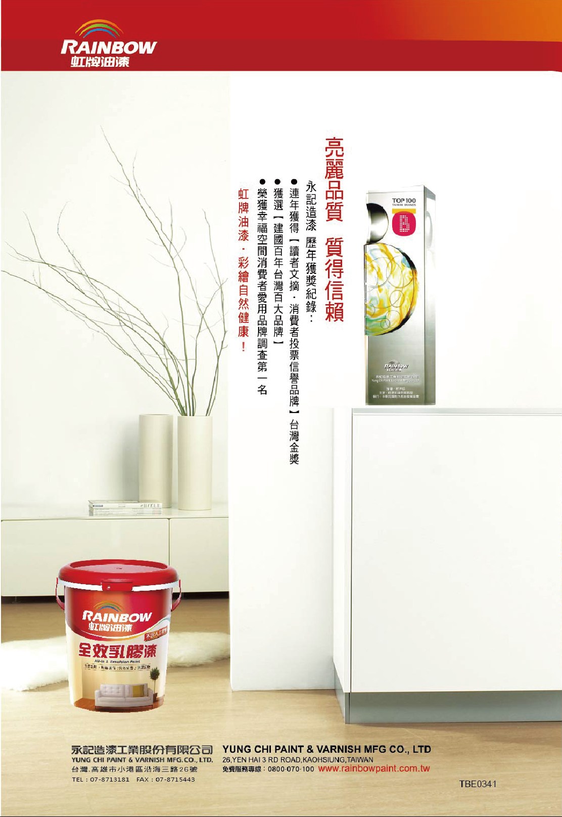 【Rainbow_虹牌油漆】458 全效乳膠漆 平光(1加侖裝)2165藤色