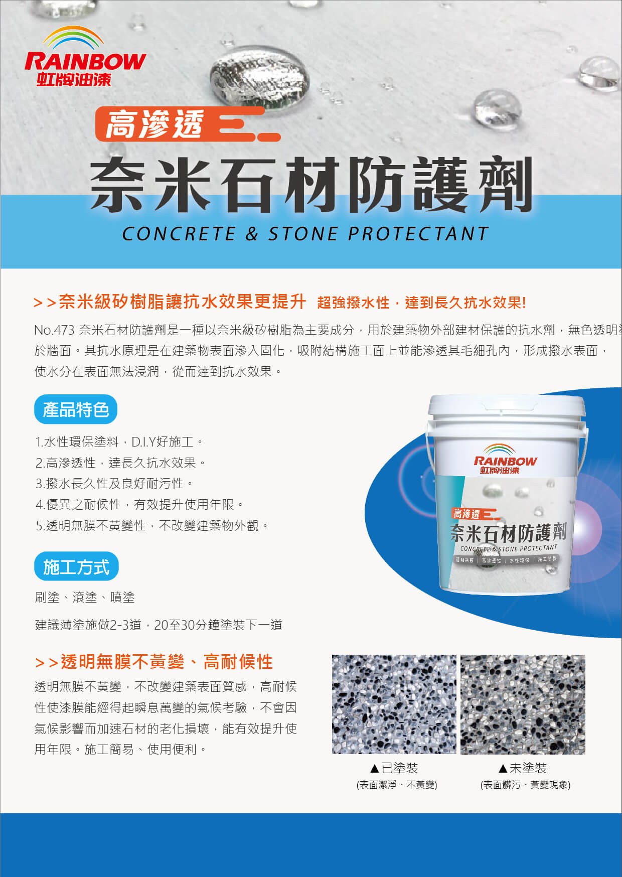【Rainbow_虹牌油漆】473奈米石材防護劑(1加侖裝)