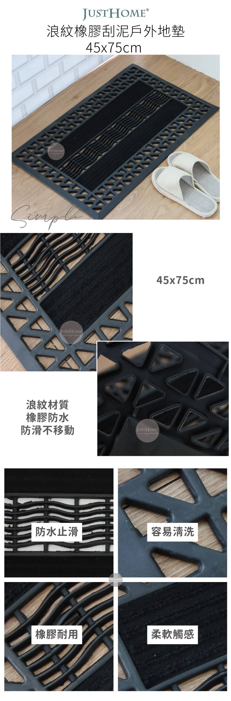 玄關除塵刮泥耐磨地墊 PVC材質 90 x 60 x 1cm 好運龍來 1個