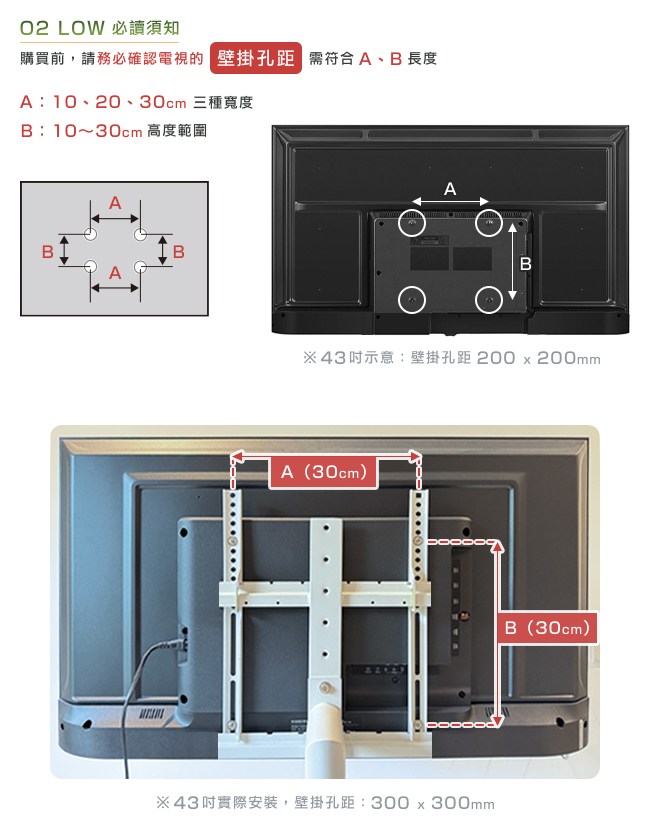 隨著時代日新月異,電視越做越大,然而因為房間格局的關係,不得已放棄了大電視。透過「壁掛式電視立架」的設計,適用電視尺寸 24~45 吋,不需要佔用大量安裝空間,依舊保持部屋寬敞。