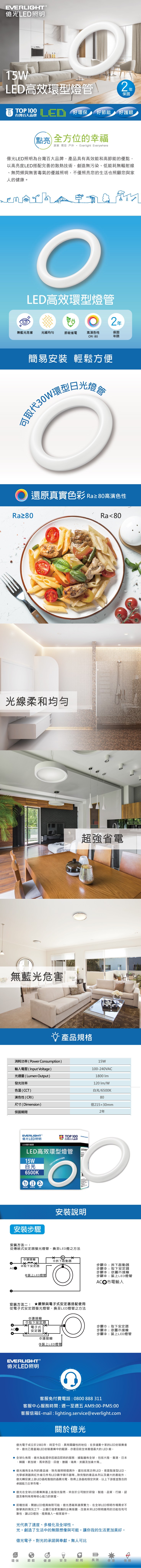 憶光EVERLIGHT 15W LED高效環型燈管/白光/6500K/ETR1/個