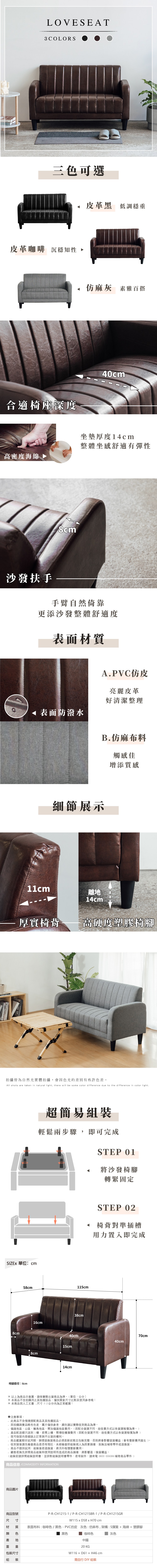 靚靚耐磨雙人皮沙發/五色雙人深灰