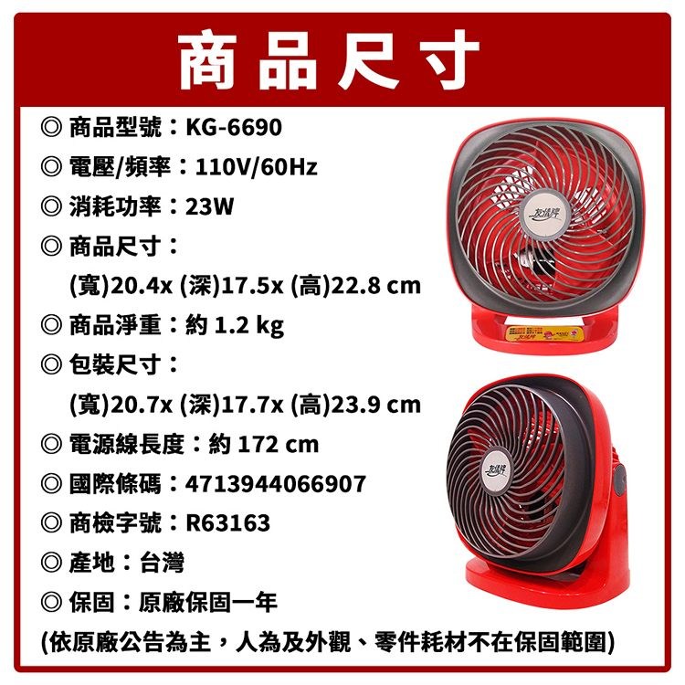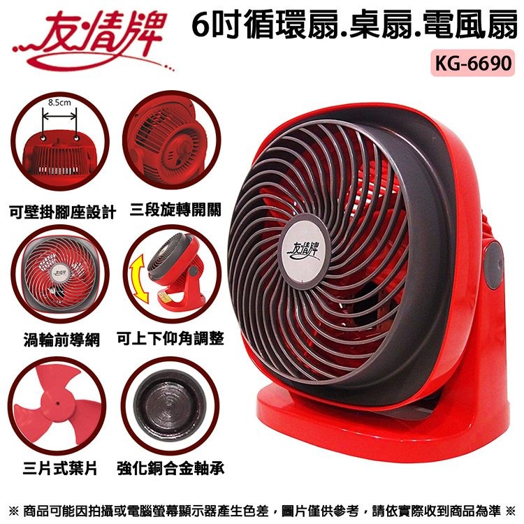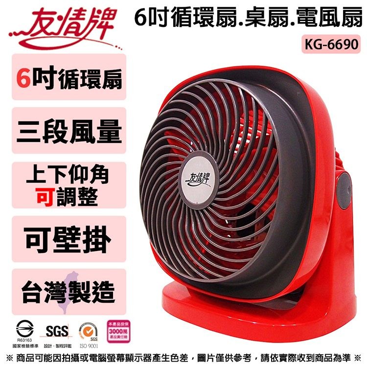 友情牌 6吋循環扇.桌扇.電風扇-可壁掛 KG-6690