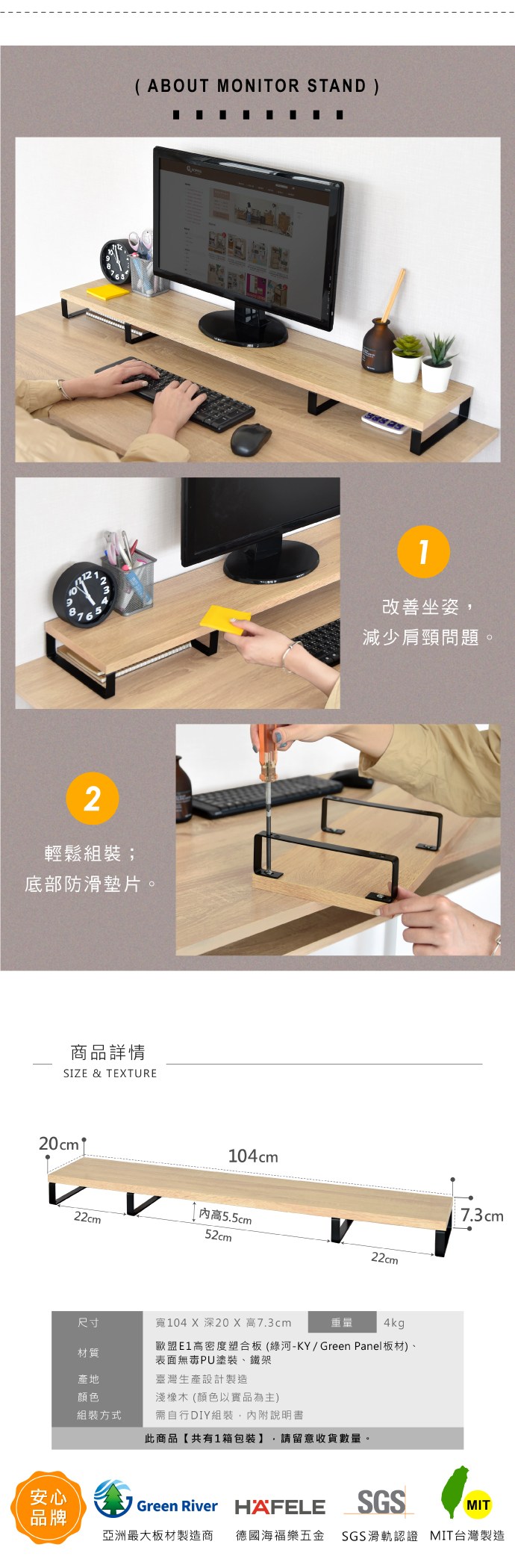 樂嫚妮 桌上架/螢幕架/端正坐姿-(3色)白色