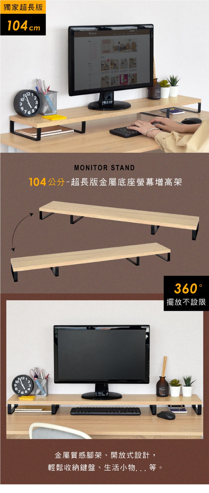 《HOPMA》可調式桌上螢幕架 台灣製造 主機架 收納架 螢幕增高架 展示架 鍵盤收納架 桌上架-黑胡桃