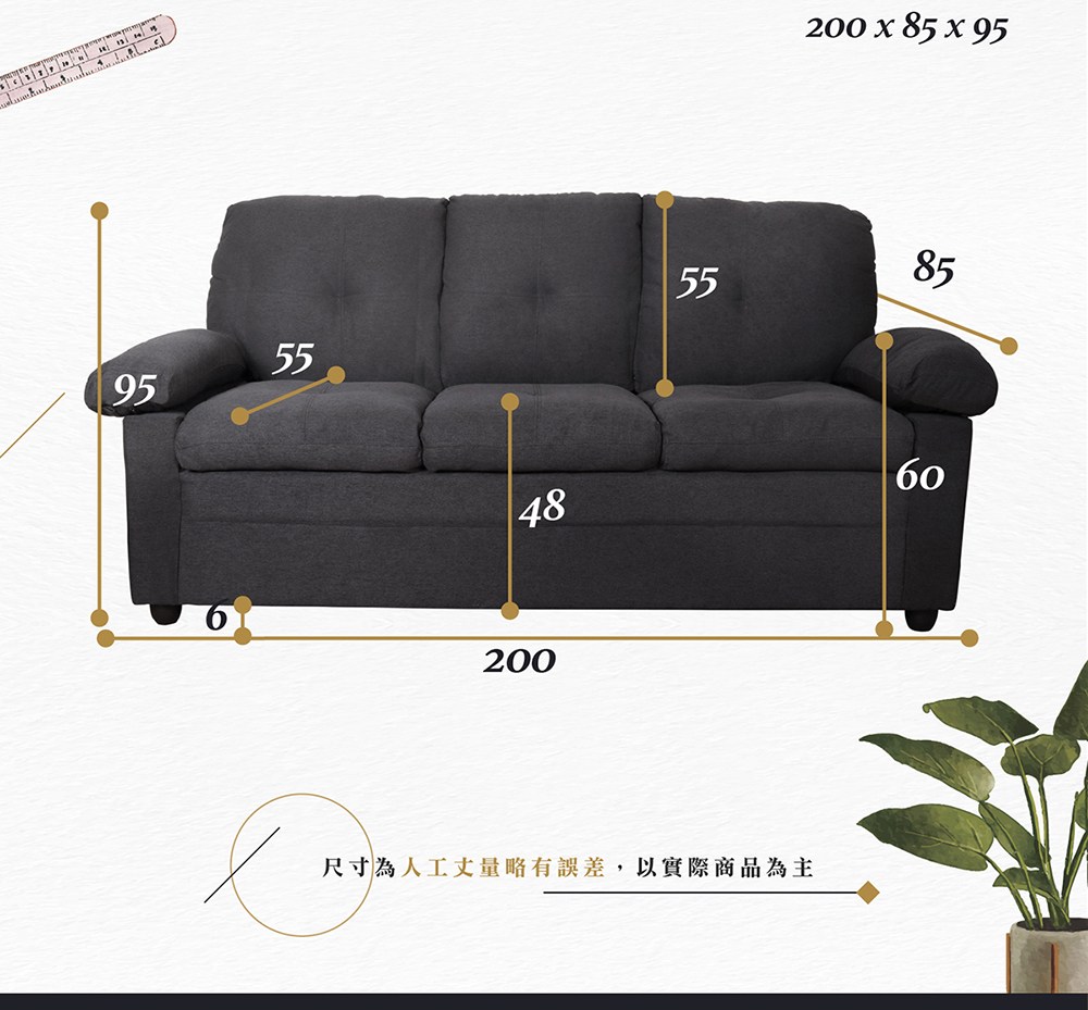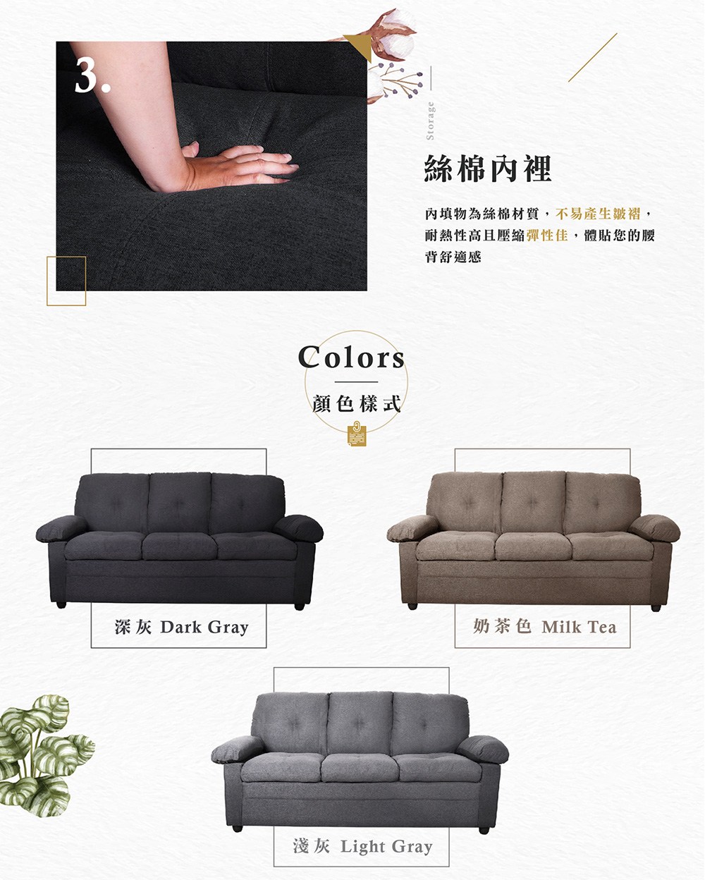 【Hampton 漢汀堡】查爾斯美式三人沙發淺灰