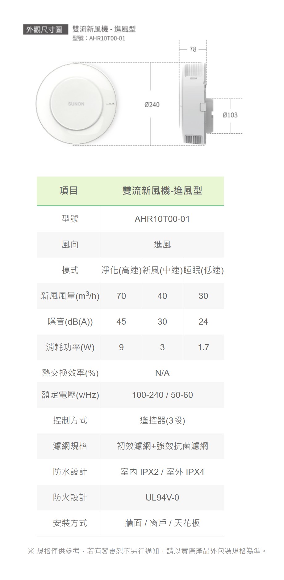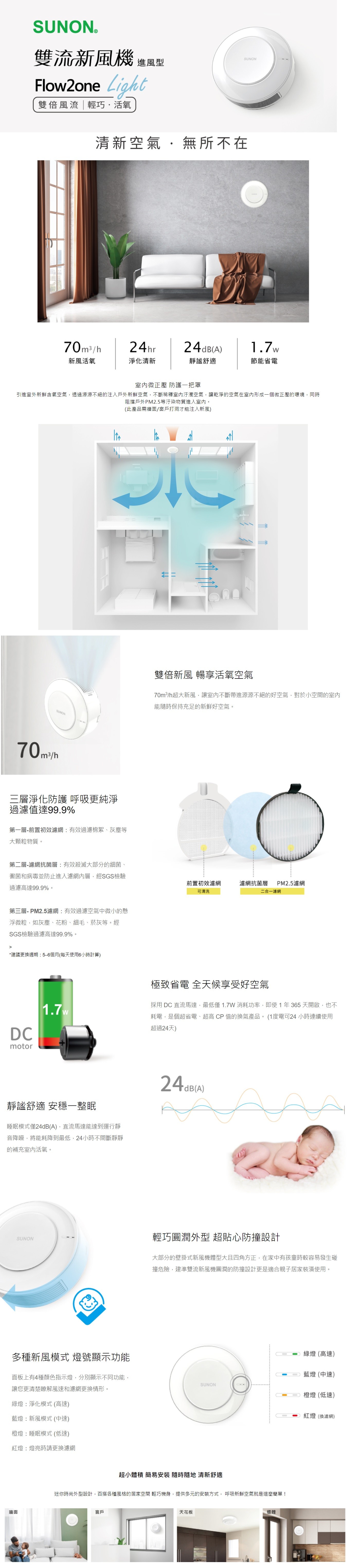 【SUNON建準】Flow2 One Light雙流新風機進風型(補氧機) AHR10T00
