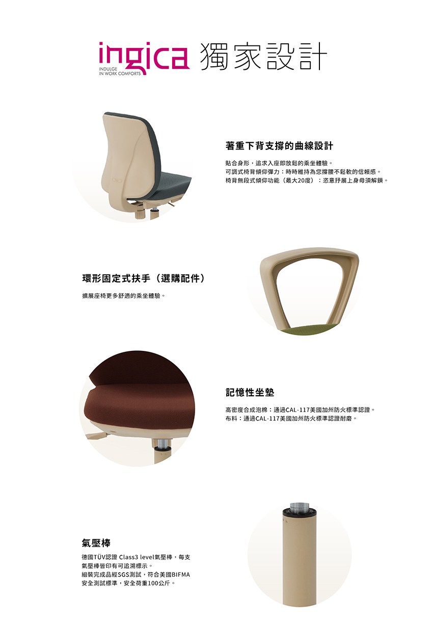 日本 KOKUYO pallo系列 彈性工學辦公椅 白茶杏 布背