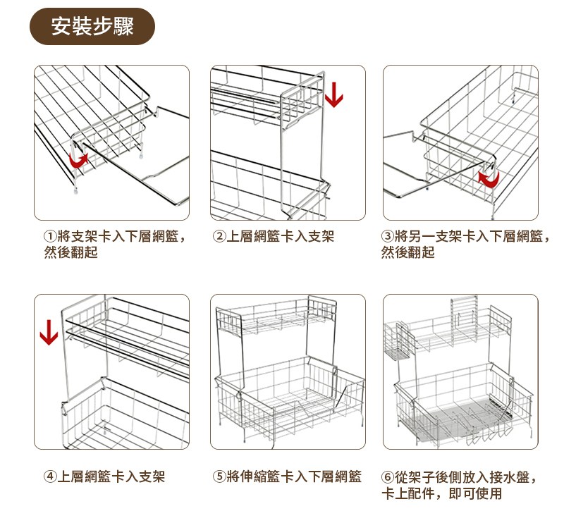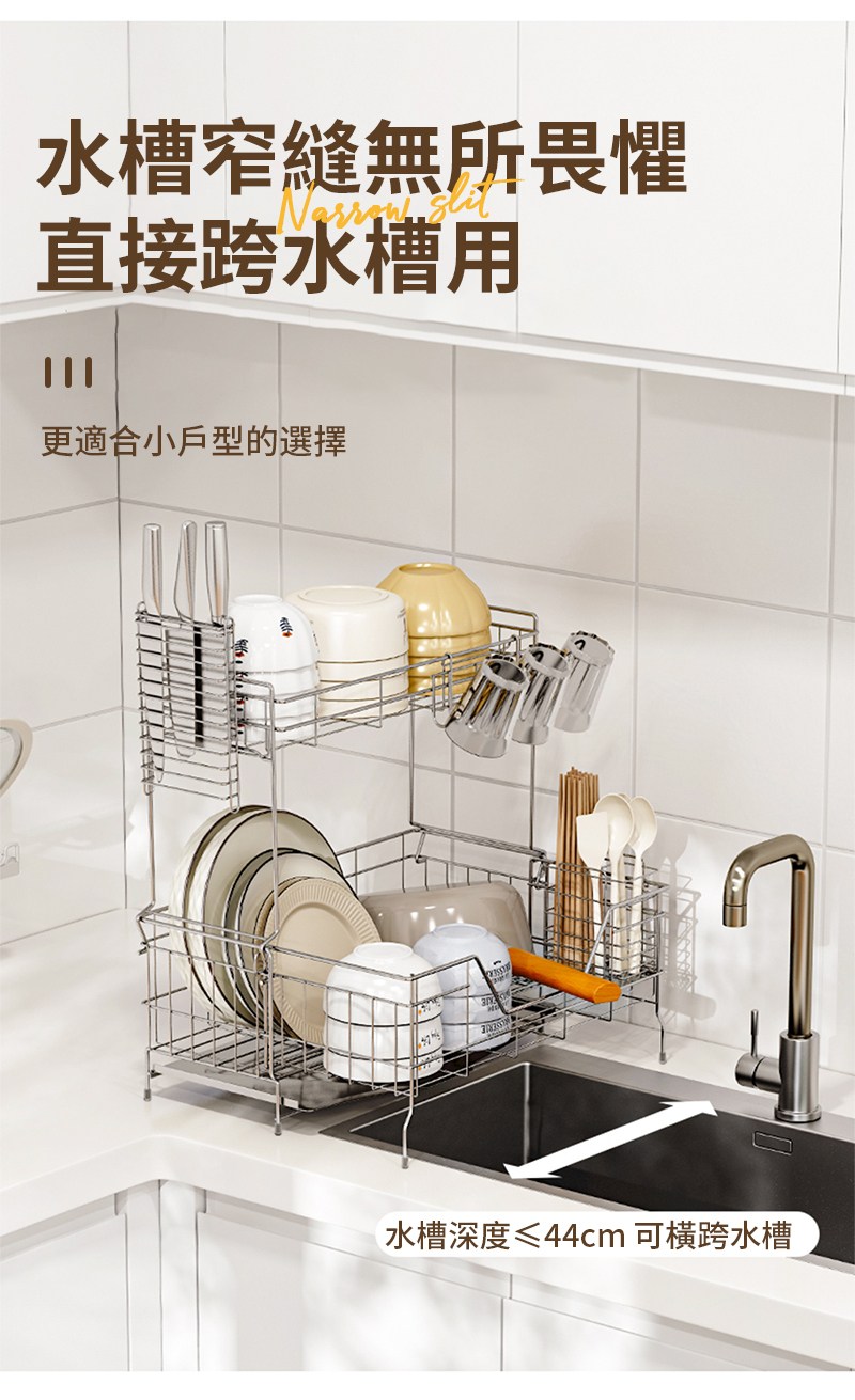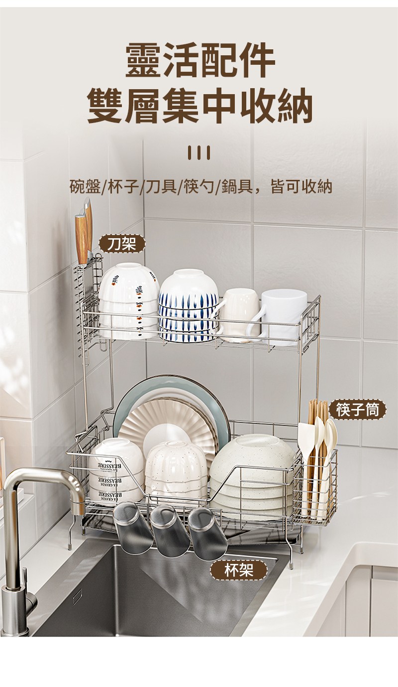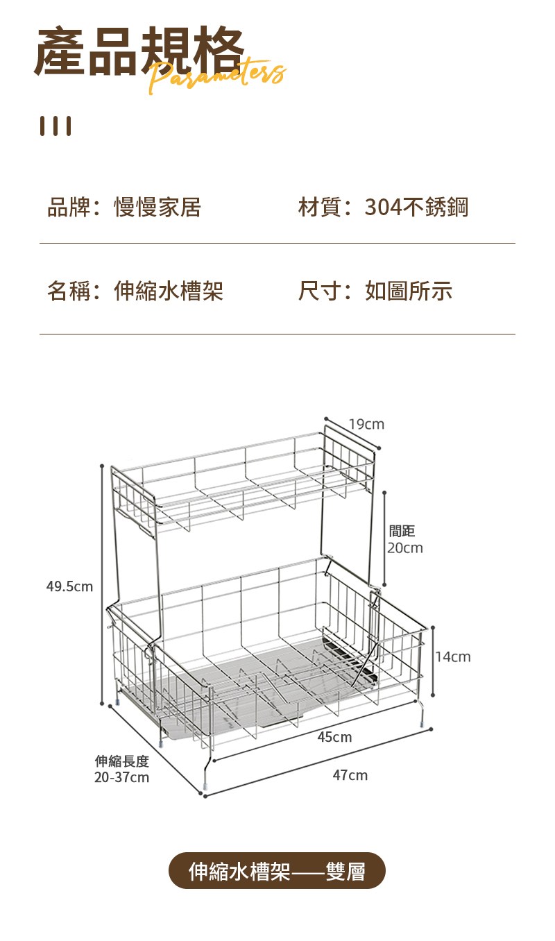 【慢慢家居】304不鏽鋼-可伸縮廚房水槽雙層瀝水架 (碗盤瀝水架 水槽收納架)304瀝水籃(雙層)